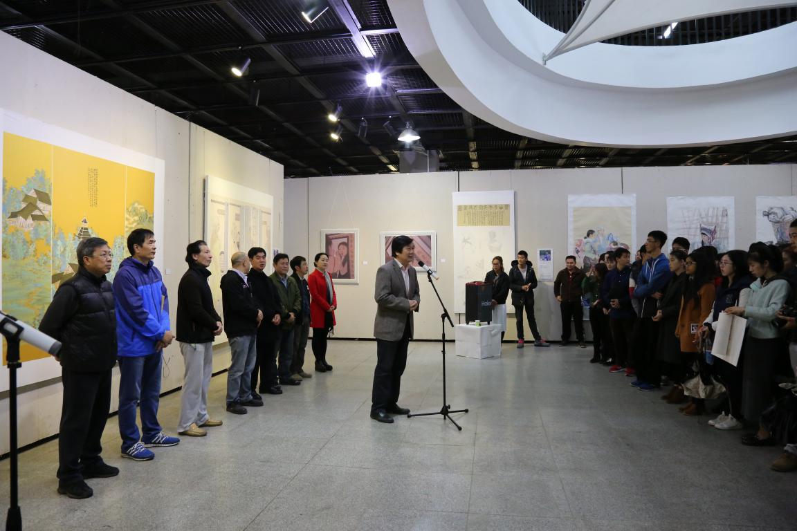 分管研究生工作的公司副经理、研究生导师蔡智教授讲话,重申了此次展览是技能类学术型研究生的毕业展和专业学位艺术硕士研究生第二次中期汇报展,这里展现的作品,或多或少的体现了同学们在学习中国画、书法不同阶段的探索过程,这些探索成果有的是值得赞扬和鼓励,有的则需要调整与改进,但不管如何,探索本身就是学习的过程,是值得肯定的。能够成功举办此次展览离不开导师们的悉心指导和研究生们的积极创作,蔡副经理代表公司对各位研究生导师对公司研究生工作的支持与指导再一次表示衷心的感谢,同时也祝愿同学们在今后的艺术道路上越走越远。