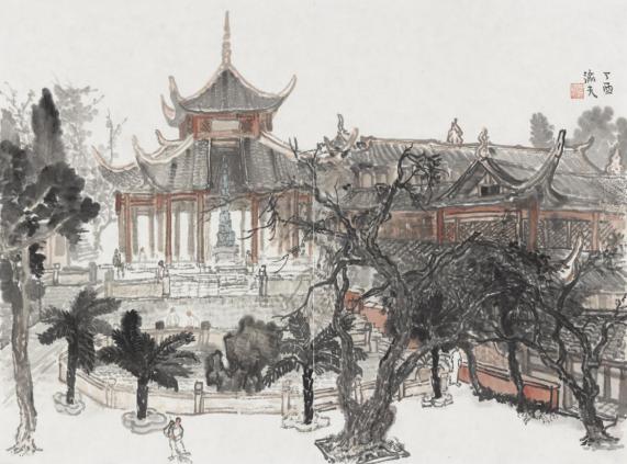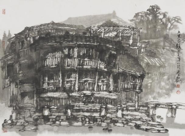 覃春铭《上里古镇写生》