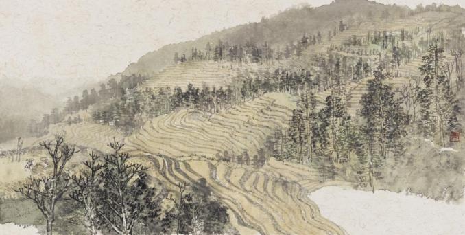 商进《龙胜梯田写生》