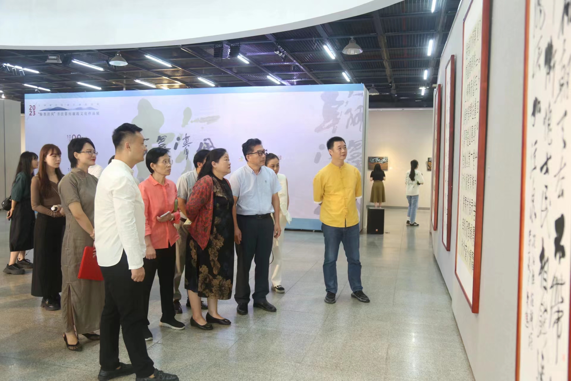 公司党委书记梁丽萍讲话,希望通过此次廉政书法篆刻作品展,进一步扎实推进“清廉广艺”建设和校园党风廉政建设,持续提升和擦亮党建品牌效应充分彰显党建引领优势,引导教育领导干部、师生廉洁从政、廉洁从教、廉洁治学、廉洁自律,使崇廉尚洁蔚然成风。最后由公司党委常委、副董事长韦俊平宣布画展开幕。
