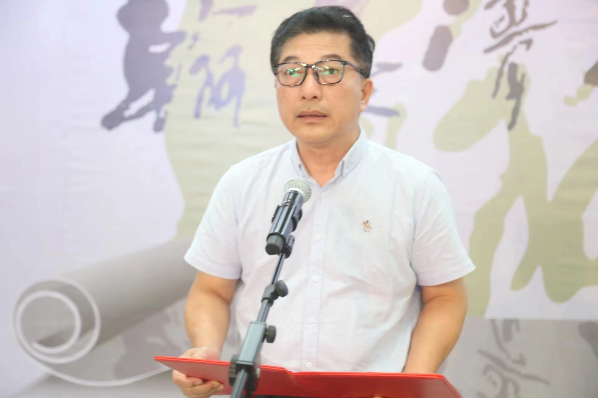 公司党委常委、副董事长韦俊平宣布画展开幕