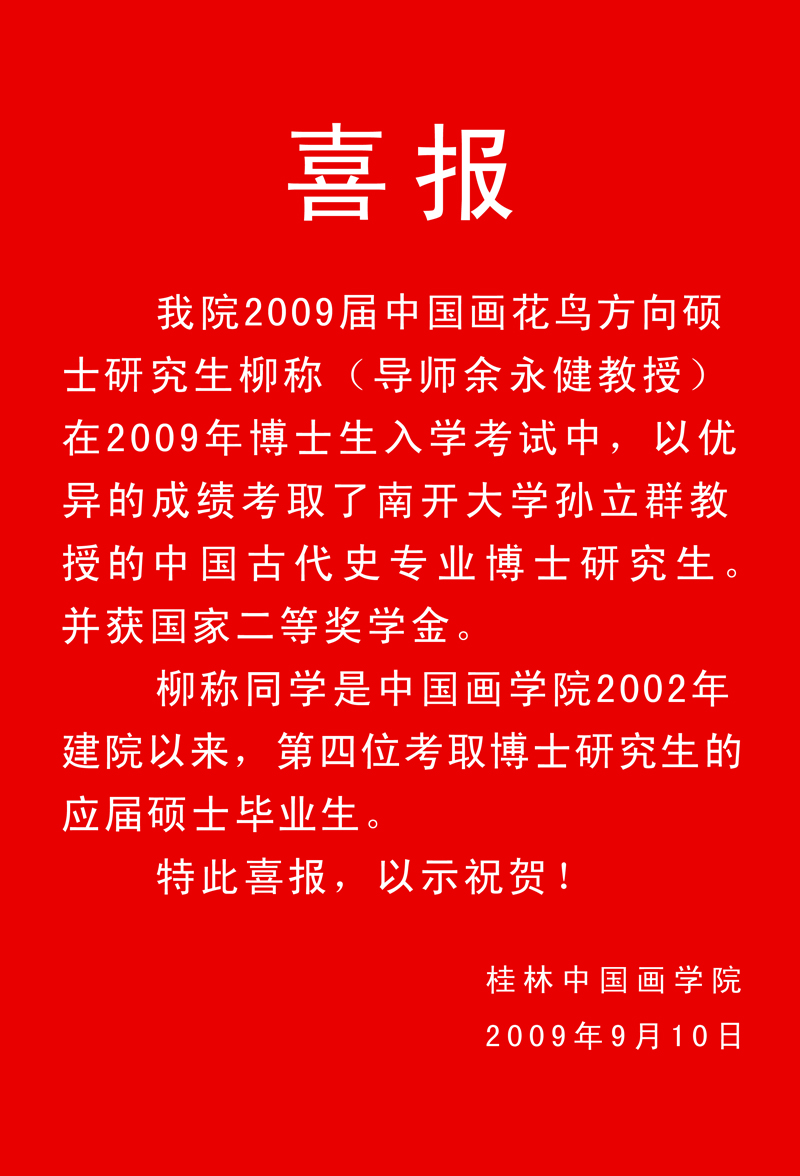 喜报:公司2009届硕士研究生柳称以优异的成绩考取南开大学博士