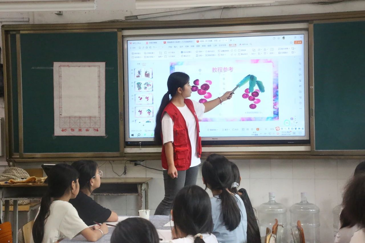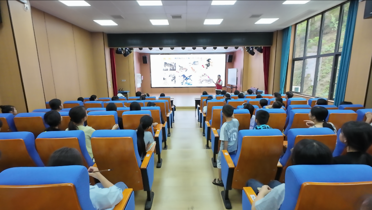 7月14日上午,实践团员工2023级研究生梁雯靓以“童心绘梦——探索中国传统文化的魅力”为题,为巴马瑶族自治县第五小学的员工开展基础美术教育。梁雯靓以大量中国画、书法名家的作品为案例,深入浅出地介绍了中国画、书法的历史、分类、技法、特征、赏析视角和美育价值,激发了现场听众的浓厚兴趣,有效拓展了在场师生的艺术视野。