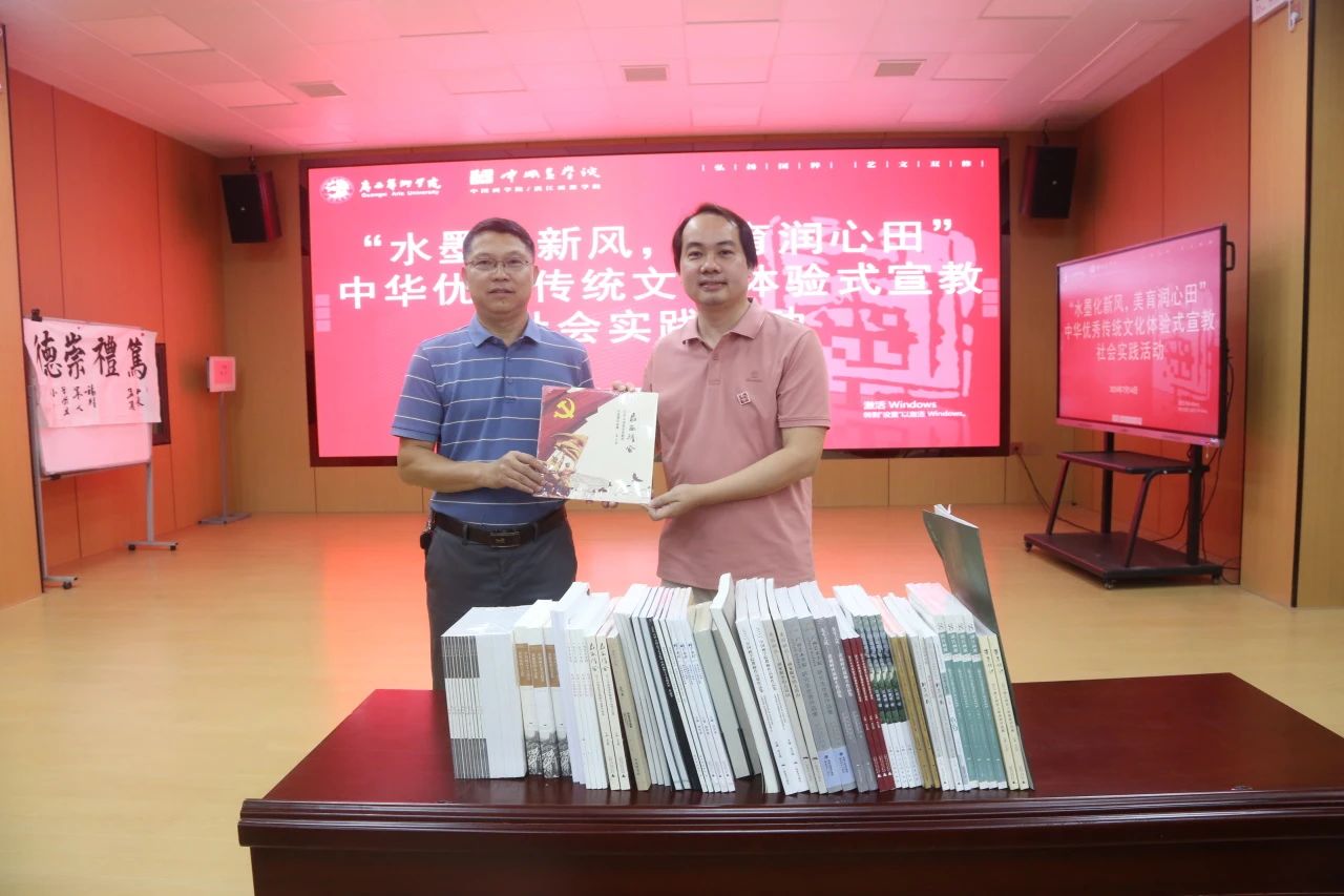 为进一步支持地方美育教育工作,实践团师生代表公司向巴马瑶族自治县第五小学捐赠公司师生书画著作80余本。通过丰富美育素材,以美育人,以文化人,鼓励员工涵养高贵精神品质,在“日用而不觉”的学习和阅读中受益终生。