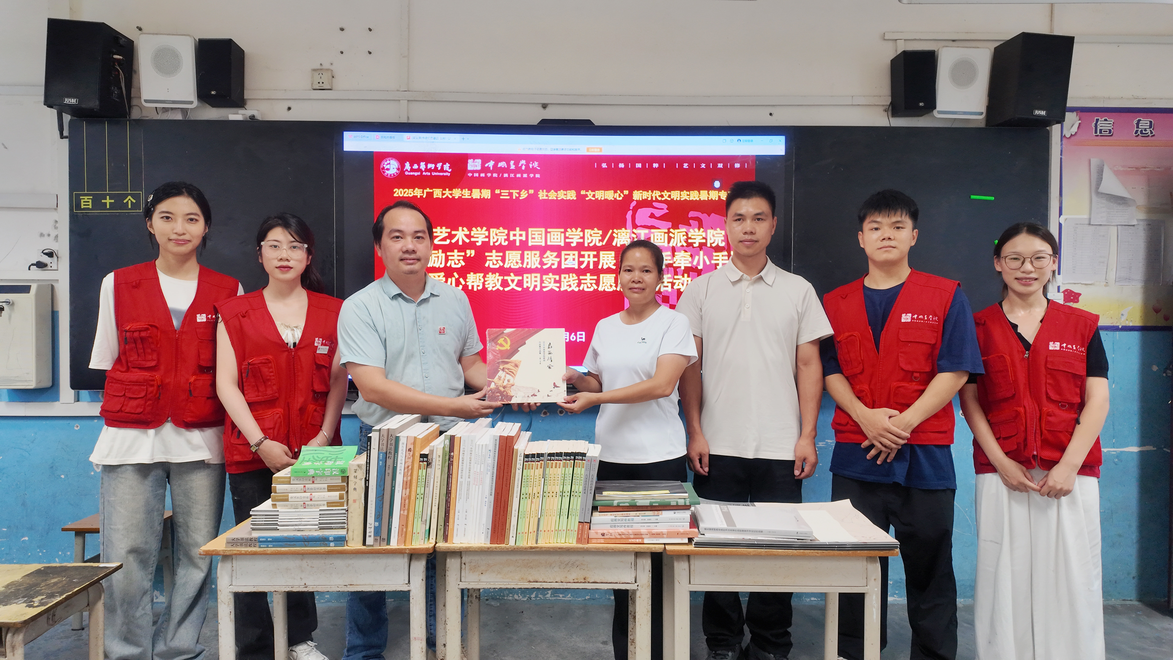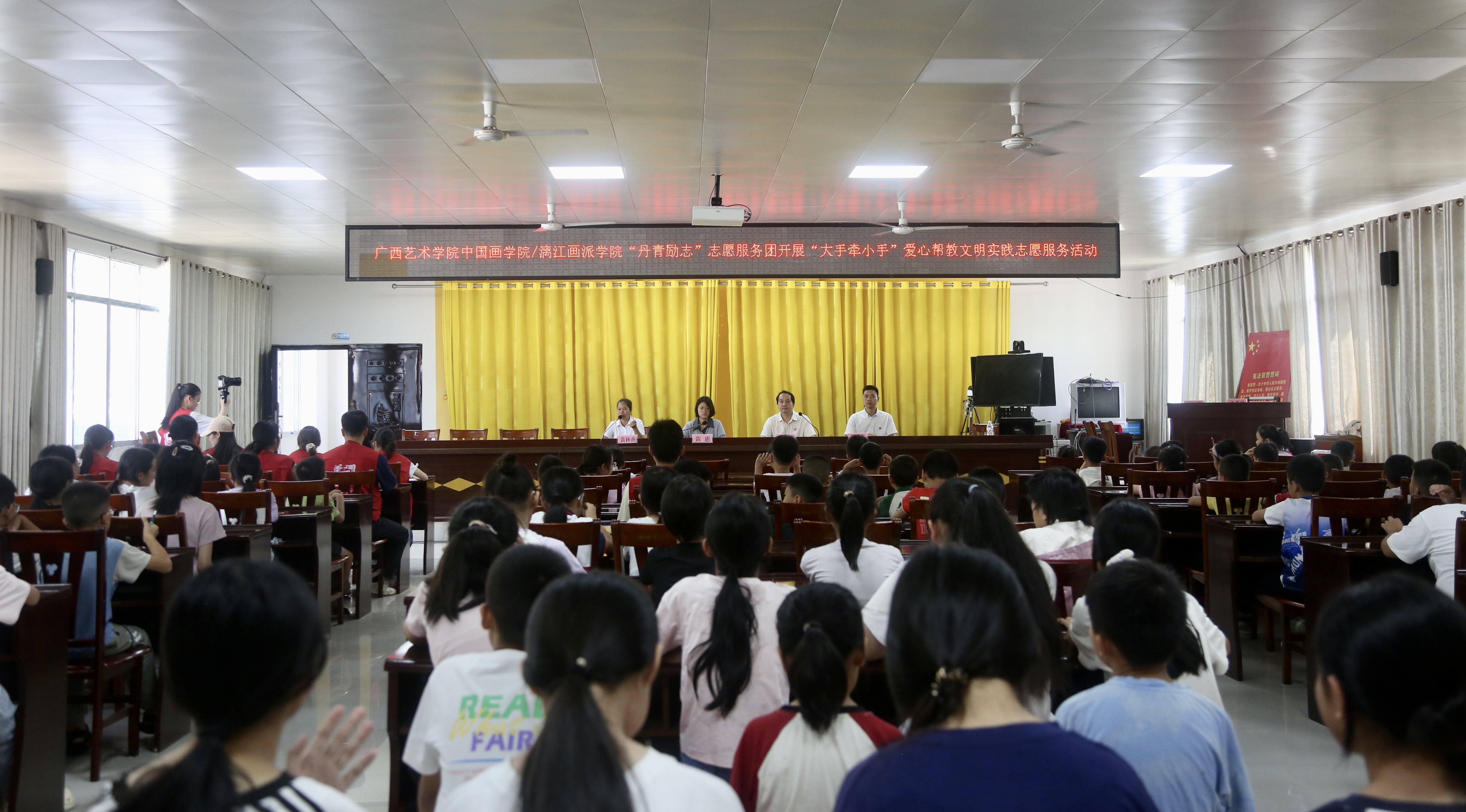 为深入践行习近平总书记关于青年工作的重要思想,引导青年学子在社会课堂中“受教育、长才干、作贡献”,厚植爱国情怀, 2025年7月,威廉williamhill体育/漓江画派公司精心组建“丹青励志”志愿服务队,怀揣艺术理想与报国热忱, 奔赴广西河池市凤山县江州瑶族乡九年一贯制公司,开展为期6天的“大手牵小手”爱心帮教文明实践志愿服务活动。12名师生志愿者将优质美育资源送到基层,用专业所长助力乡村文化振兴与青少年爱国精神培育及美育提升。